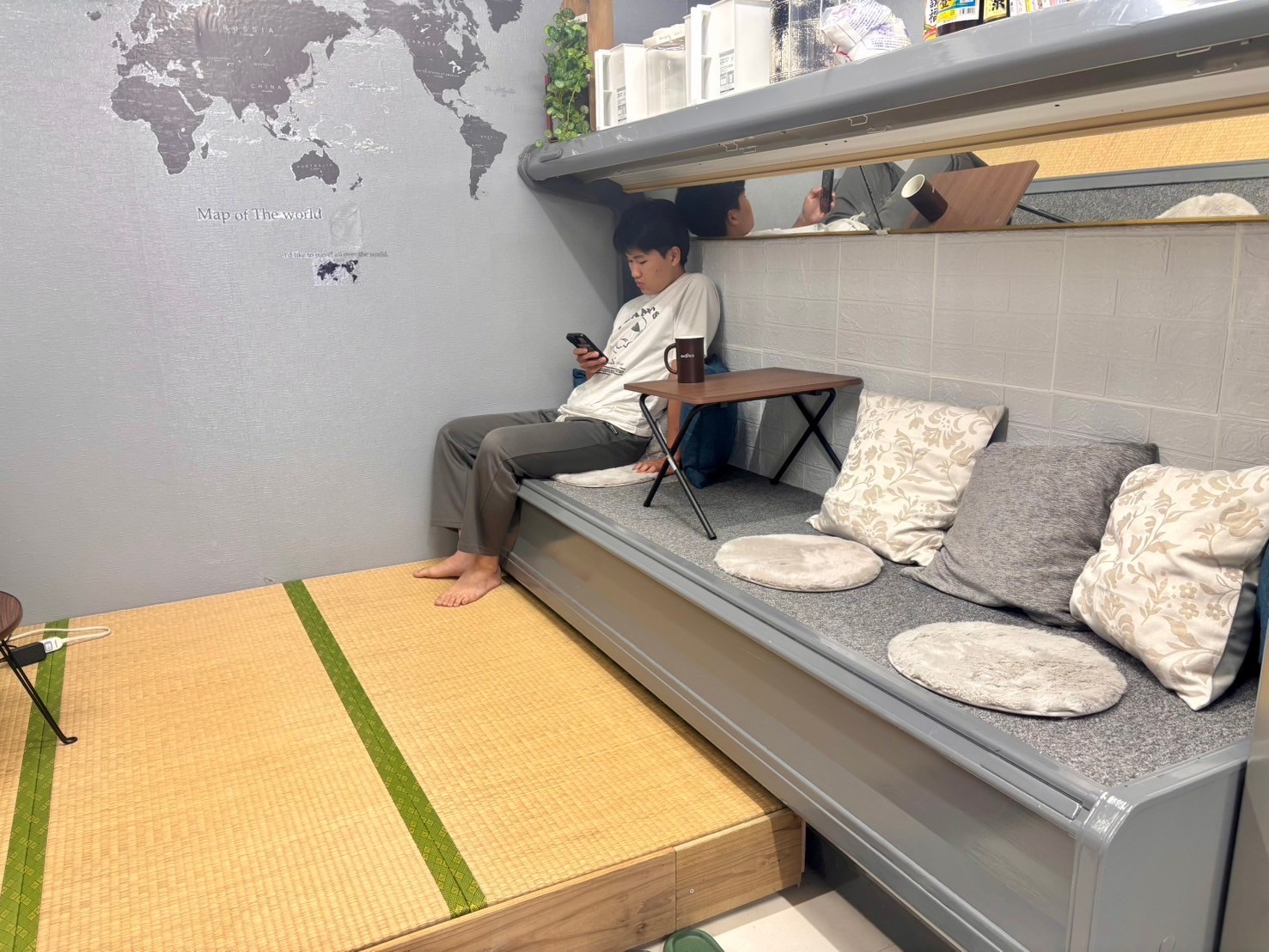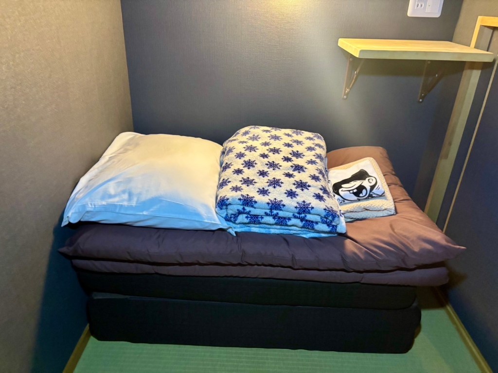 客室は四方壁に囲まれたカプセル型の個室タイプ ゆったりと足を伸ばせる快適さと、遮音性にも配慮した造りになっています。